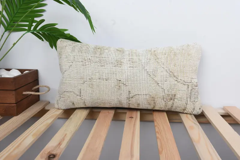 Beige Southwestern Embroidered Pillow, 10x20 Handmade Throw Pillow