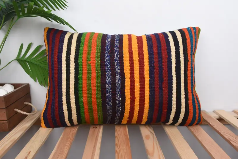 Rainbow Striped Throw Pillow, Vintage Embroidered Cushion