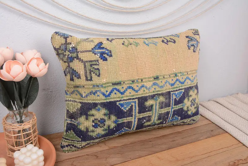 Beige Southwestern Embroidered Pillow, Vintage Cushion with Zipper Closure