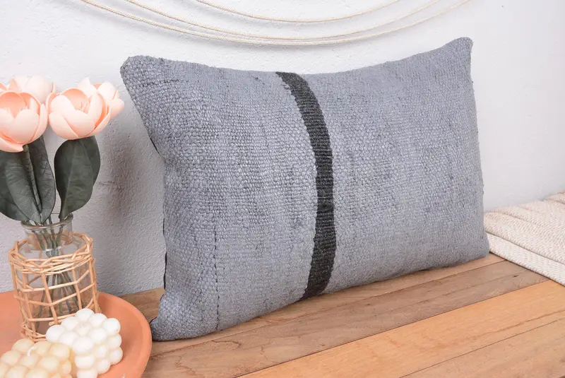 Gray & Brown Striped Throw Pillow, Handmade Linen Cushion