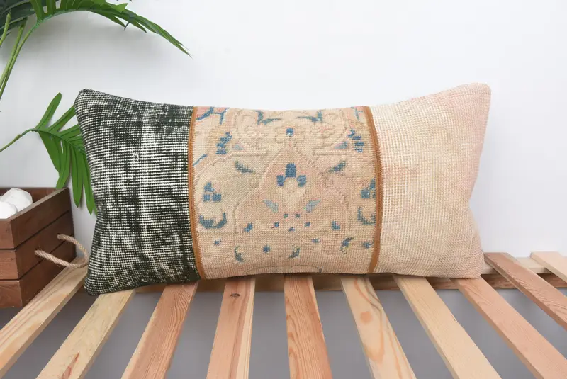 Embroidered 12x24 Throw Pillow, Handmade Patchwork Cushion