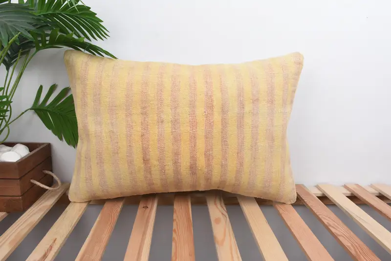 Brown & Beige Striped Throw Pillow, Handmade Rectangular Cushion