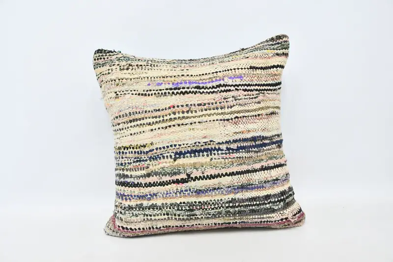 Handmade Striped Cushion Case, 22x22 Embroidered Throw Pillow
