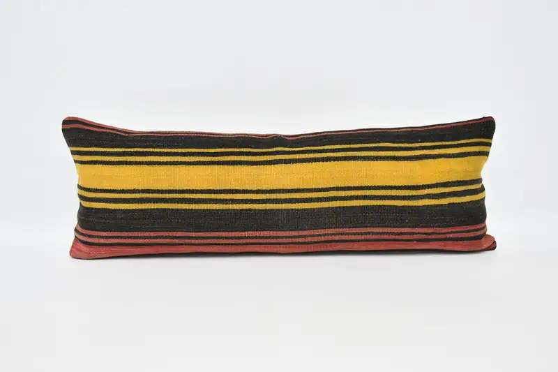 Handmade Striped Throw Pillow, 16x42 Brown Cushion