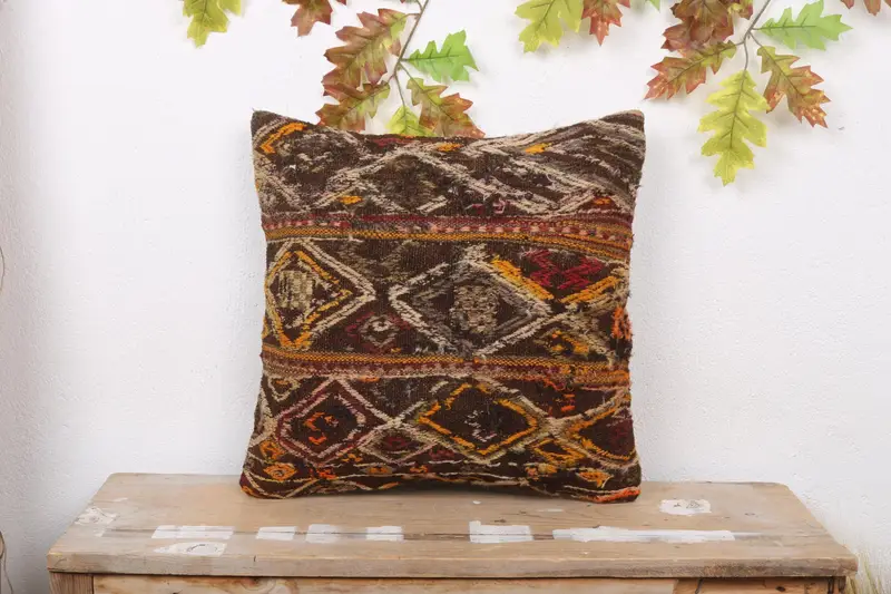 Orange Southwestern Embroidered Throw Pillow, Vintage 18x18 Cushion