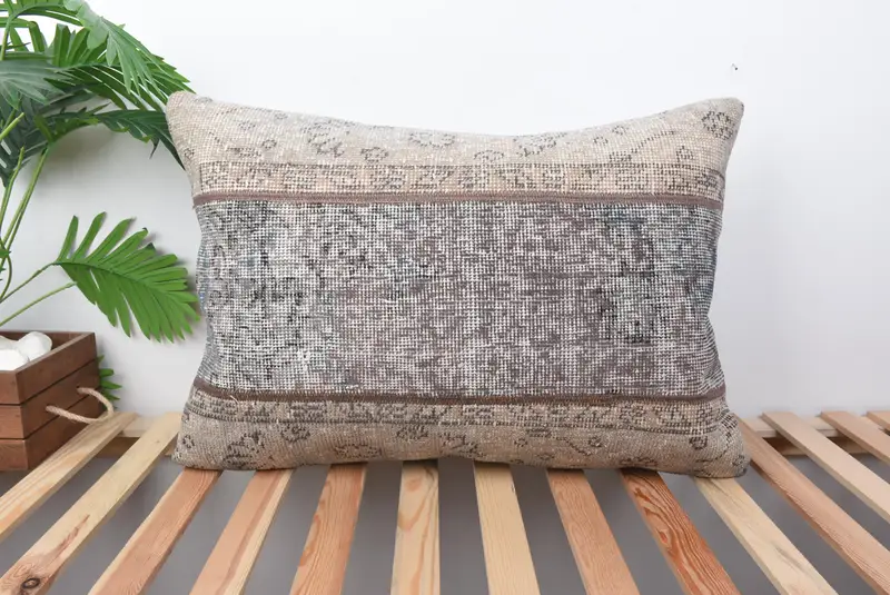 Gray & Brown Patchwork Throw Pillow, Handmade Embroidered Pillow