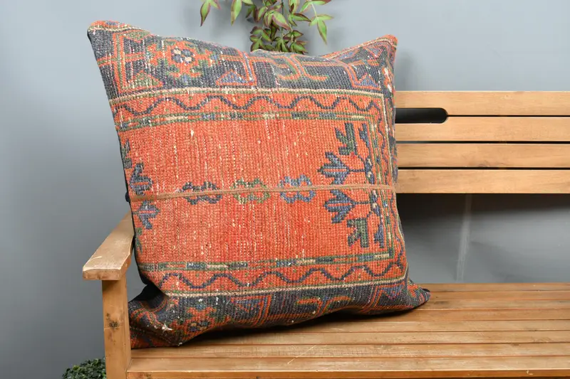 Red & Bronze Patchwork Throw Pillow, 28x28 Embroidered Cushion