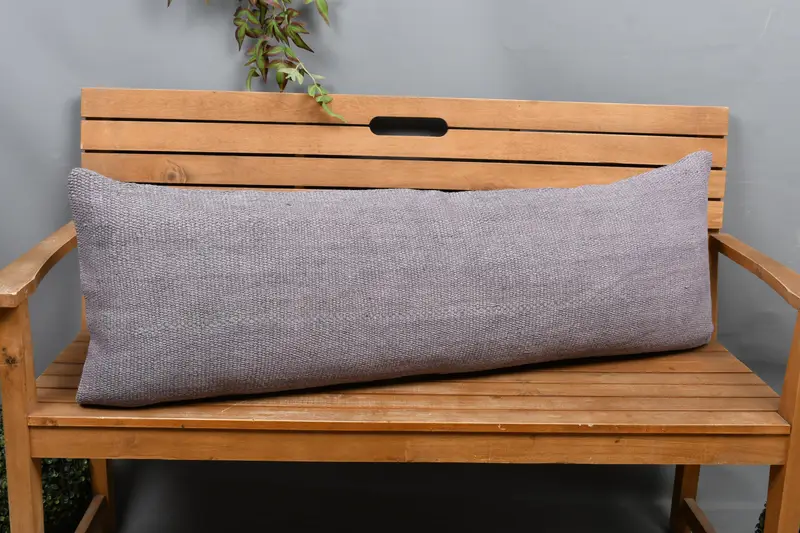 Gray Southwestern Embroidered Throw Pillow, 16x48 Handmade Cushion