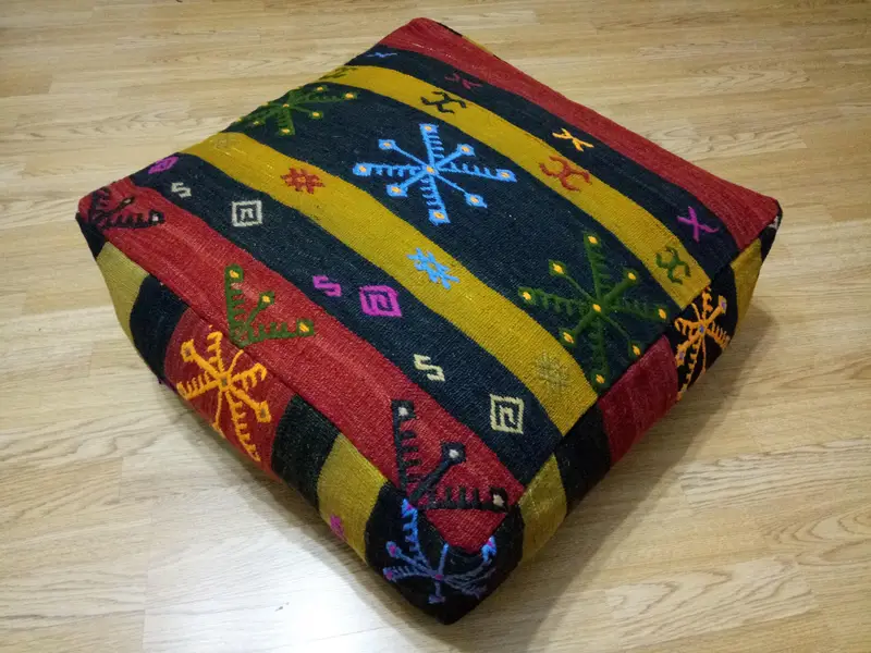 Handmade Striped Wool Throw Pillow, Vintage Embroidered Square Pillow