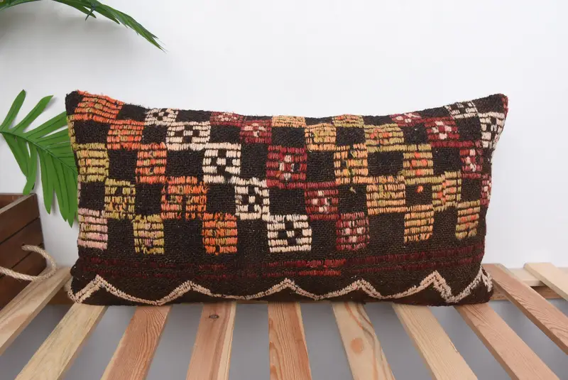 Red Southwestern Embroidered Throw Pillow, Handmade Vintage Cushion