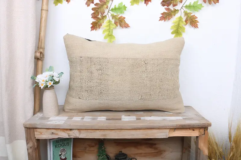 Beige Embroidered Patchwork Pillow, 16x24 Handmade Throw Pillow