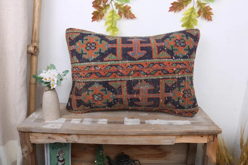 Blue Southwestern Embroidered Throw Pillow, Versatile 16x24 Cushion