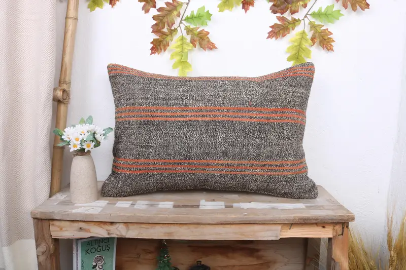 Brown & Red Striped Throw Pillow, 16x24 Embroidered Rectangle Pillow