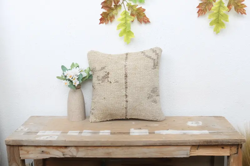 Beige & Brown Striped Pillow, Vintage Embroidered Throw Pillow