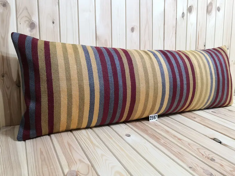 Handmade Striped Wool Throw Pillow, Vintage Rectangle Cushion
