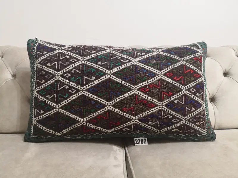 Handmade Wool Throw Pillow, Red Geometric Vintage Cushion