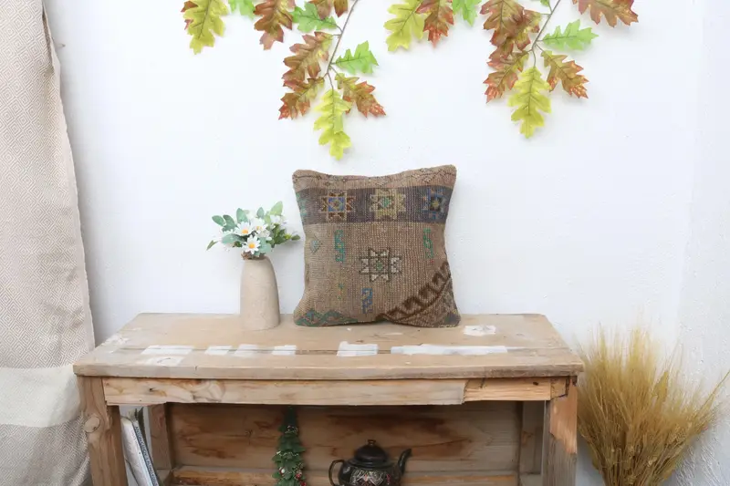 Brown & Purple Southwestern Throw Pillow, 12x12 Embroidered Cushion