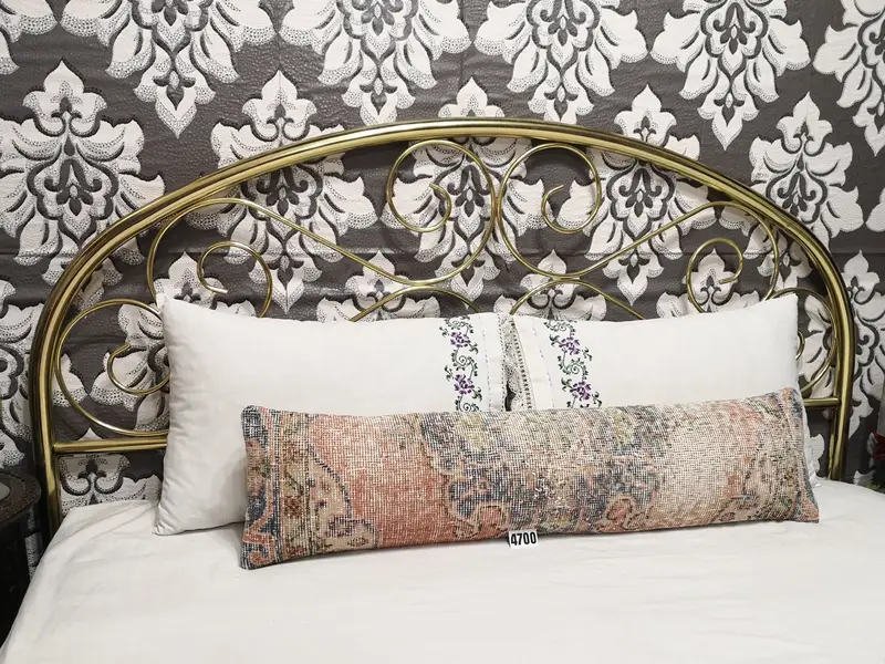Handmade Embroidered Wool Throw Pillow, Geometric Vintage Decor