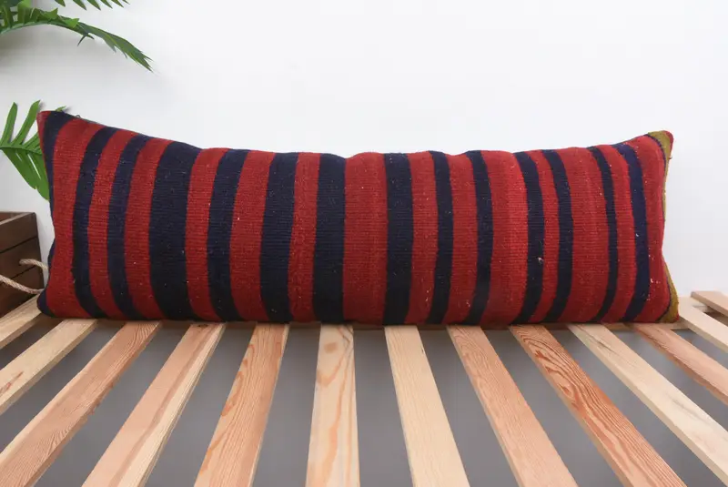 Red & Bronze Striped Throw Pillow, Handmade Embroidered Pillow