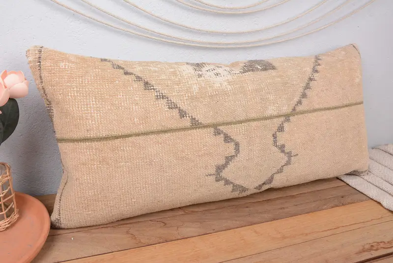 Beige & Brown Embroidered Patchwork Throw Pillow, Handmade Vintage Cushion