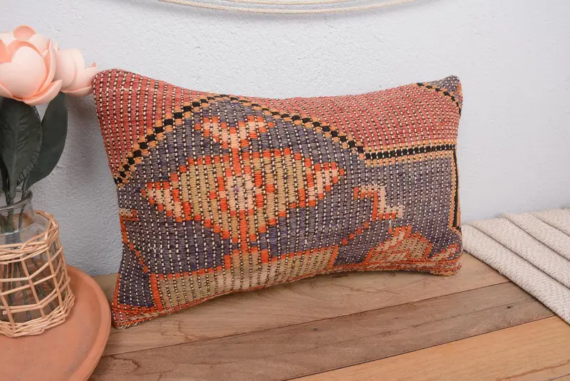 Handmade Blue & Red Southwestern Throw Pillow, 12x20 Embroidered Cushion