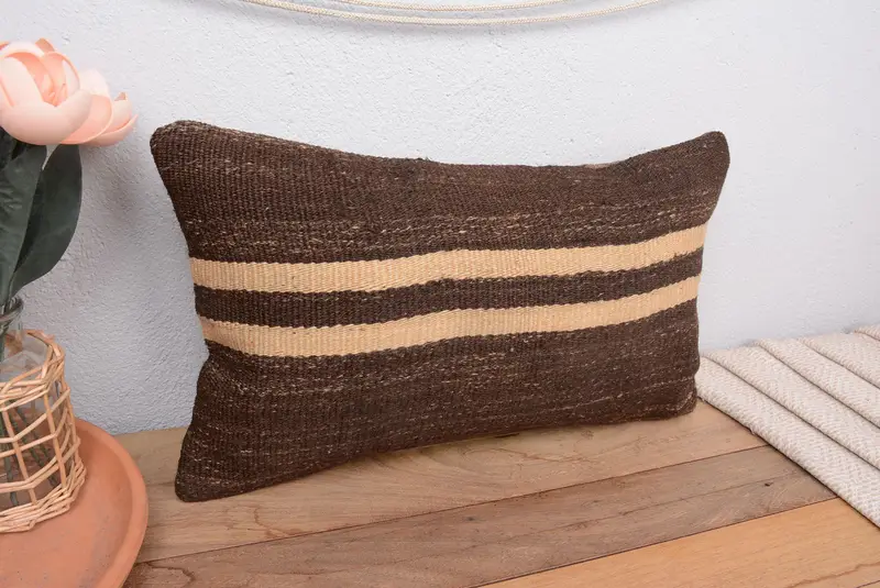Brown & Beige Striped Pillow, 12x20 Handmade Throw Pillow