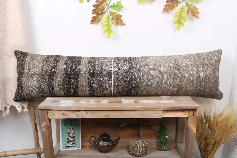 Blue & Red Floral Throw Pillow, 12x48 Handmade Linen Cushion