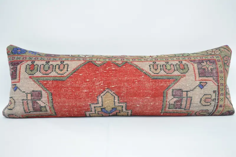Red & Gray Embroidered Throw Pillow, 16x48 Handmade Cushion