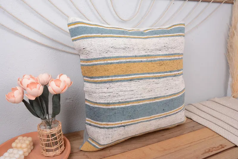Gray & Yellow Striped Throw Pillow, 24x24 Embroidered Cushion