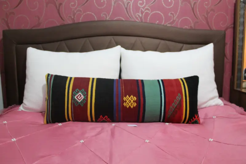 Handcrafted Red & Yellow Striped Wool Throw Pillow, Vintage Rectangle Pillow