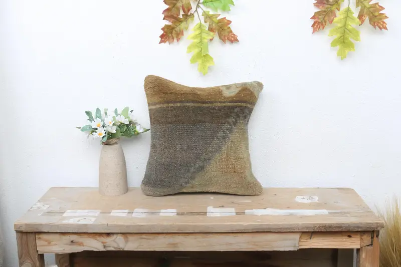 Handmade Southwestern Throw Pillow, Vintage Brown & Beige Embroidered Pillow