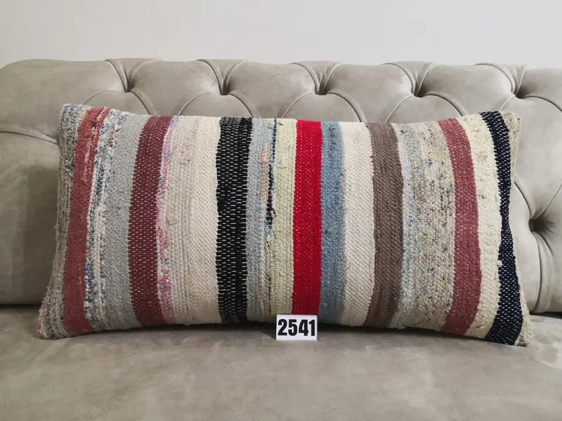 Handmade Striped Throw Pillow, Red & Bronze Rectangle Cushion