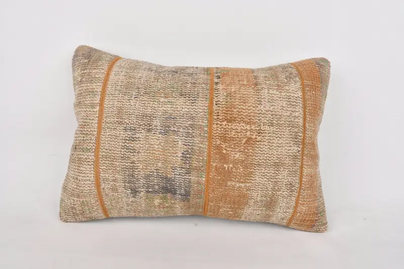 Orange & Beige Patchwork Throw Pillow, 16x24 Embroidered Pillow