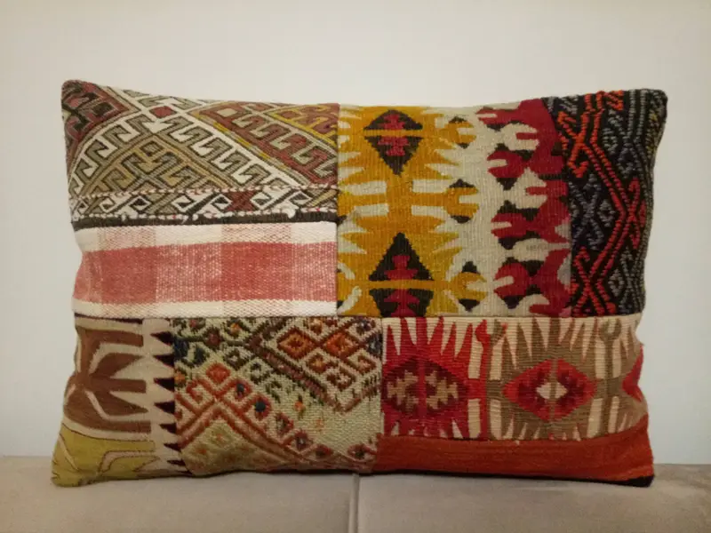 Red & Gray Patchwork Wool Throw Pillow, 16x24 Inch Rectangle Pillow