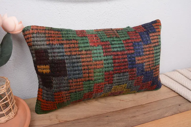 Red Southwestern Embroidered Pillow, 12x20 Handmade Throw Pillow