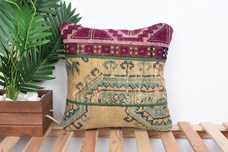 Embroidered Southwestern Throw Pillow, 16x16 Vintage Cushion with Zipper