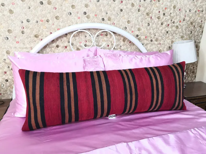 Embroidered Striped Throw Pillow, Handmade Wool Cushion