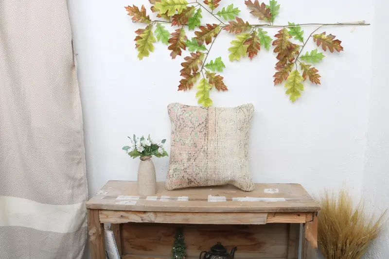 Beige & Brown Striped Throw Pillow, 14x14 Embroidered Cushion
