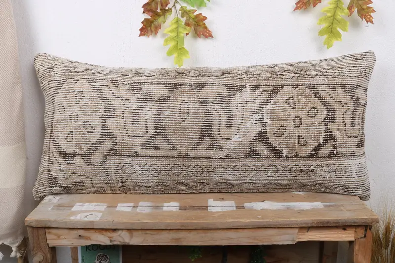Beige & Brown Embroidered Floral Throw Pillow, Handmade Vintage Cushion