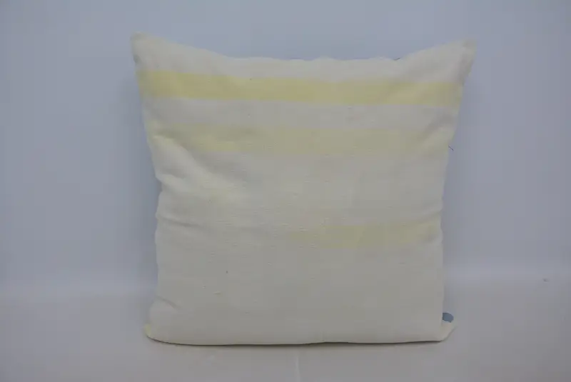 Beige & Yellow Striped Throw Pillow, Vintage Embroidered Cushion