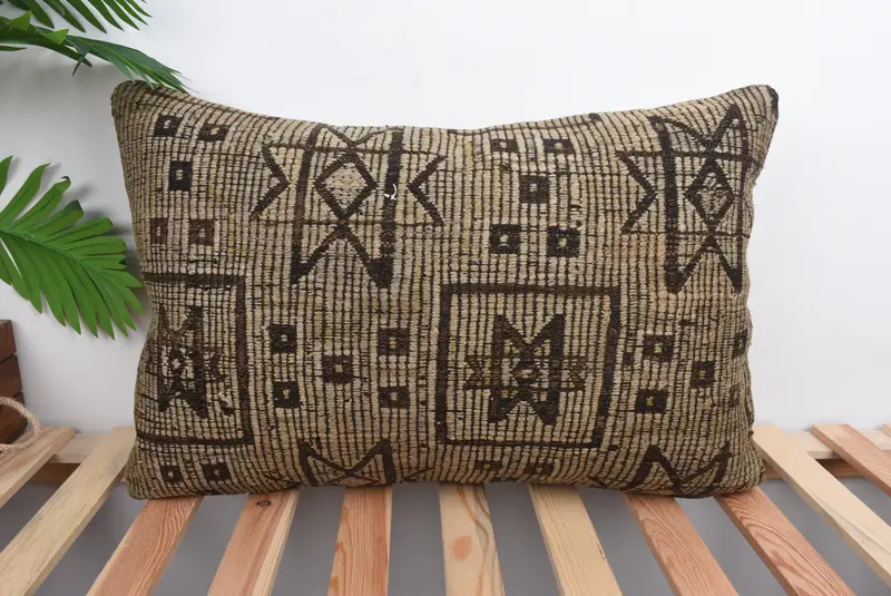 Beige Southwestern Embroidered Pillow, Handmade 16x24 Throw Pillow