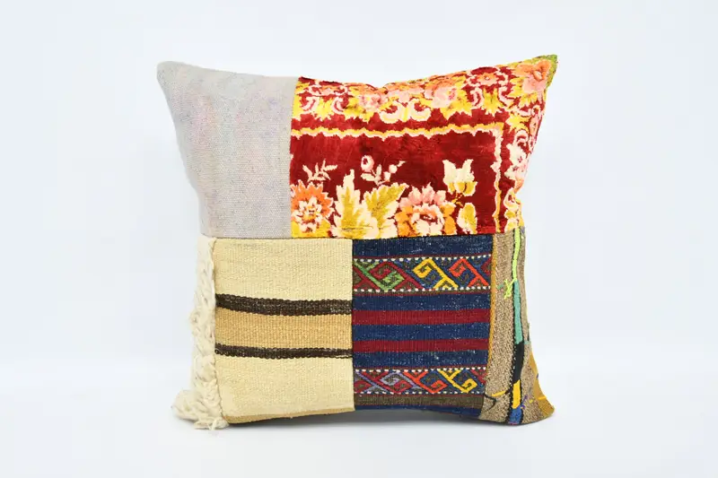 Beige & Red Embroidered Throw Pillow, 24x24 Handmade Cushion