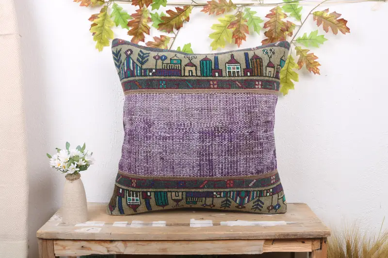 Blue & Brown Patchwork Throw Pillow, 22x22 Handmade Embroidered Pillow