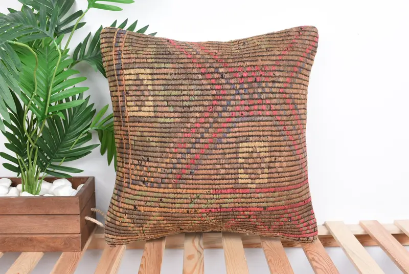 Red & Yellow Embroidered Throw Pillow, Handmade Geometric Cushion