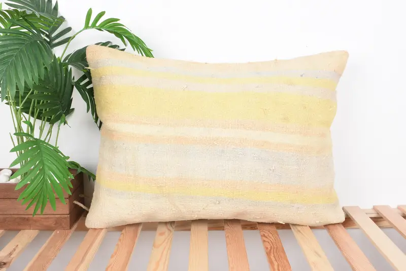 Brown & White Striped Pillow, 20x28 Embroidered Throw Pillow