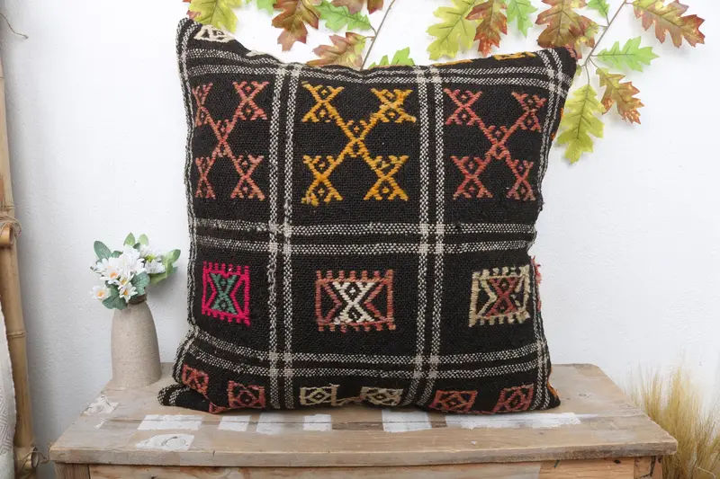 Brown & Pink Embroidered Pillow, 24x24 Handmade Throw Pillow