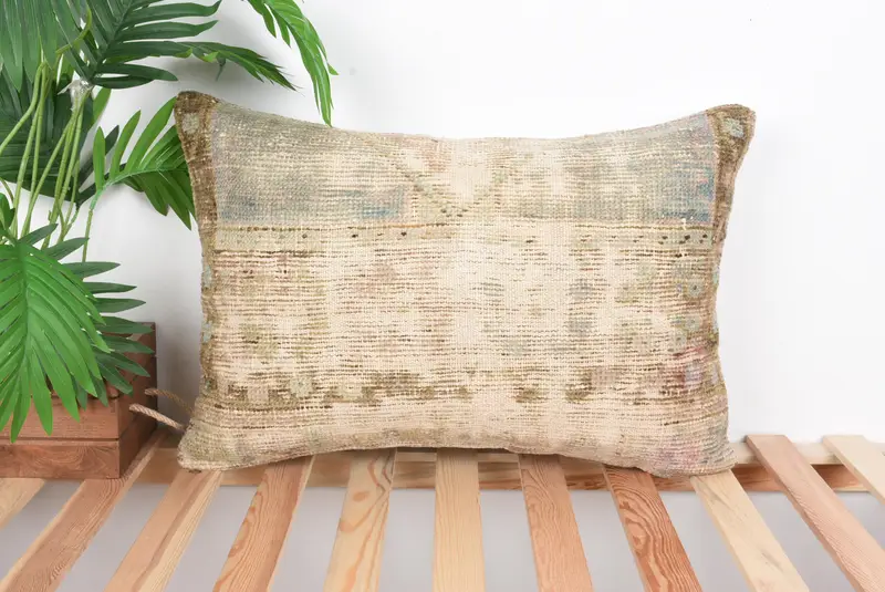 Beige & Green Southwestern Throw Pillow, Handmade Rectangle Cushion