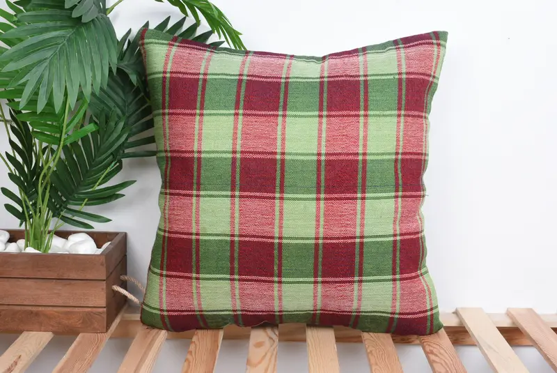 Green & Pink Striped Throw Pillow, Handmade Linen Cushion