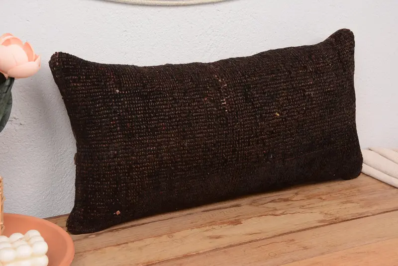 Brown Southwestern Embroidered Pillow, Handmade 12x24 Throw Pillow