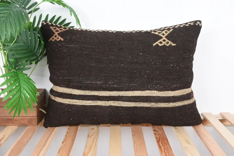Brown & Beige Striped Throw Pillow, 20x28 Handmade Linen Cushion